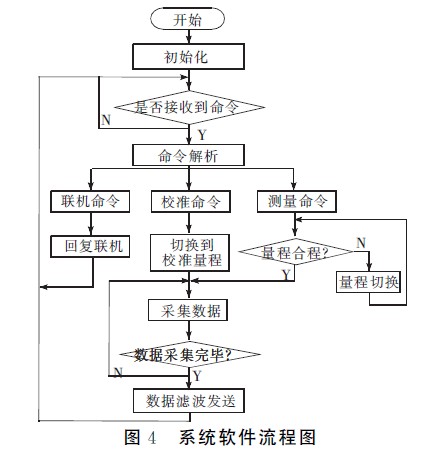 係統軟件采用C語言編寫,在IAR公司提供的集成調試環境Workbech下采用模塊化思想進行設計。係統的軟件程序固化在MSP430F149單片機的內部Flash存儲器中。係統的程序流程如圖4所示。整個流程可分為初始化、命令解析、數據測量、數據處理及顯示程序。程序設計借鑒實時操作係統的思想,劃分事件和目標。係統按照工作過程共有命令解析、聯機、校準、測量判斷、數據采集、shujudabaofasongdengjigeshijian,tongguoduishijiandechulilaiwanchengxiangyingdegongneng,bingjinxingbiyaodezhuangtaizhuanhuan。dangdianyagaibianhou,jieshoudaoceliangmingling,jinruceliangzhuangtai,jiangshujufasongbingxianshi,huidaokongxianzhuangtaijixudengdaiminglingranhoujinxingxiangyingdecaozuo。