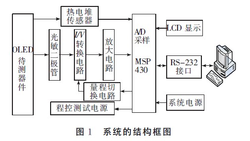 針對以上問題,本文設計了一套基於微控製器的OLED光電性能綜合測試係統,係統以微控製器為核心,是一個將精密恒壓(恒流)電源、電壓電流測量、溫度測量、亮度測量有機地結合在一起的測量係統,可實現測試條件設置、數據存儲、分析、圖形化顯示、打印輸出等功能,實現了對OLED器件光電性能的高精度快速自動測量,使OLED器件的光電性能測試工作變得方便、快捷、科學。