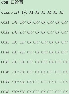 關於COM端口與中斷跳線的組合應按如下設定,特殊情況例外。