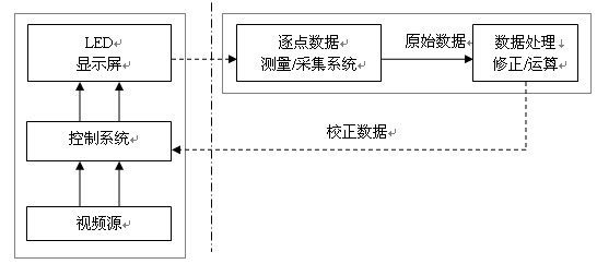 (圖一 注:圖中點劃線左側是顯示屏係統,右側是逐點校正數據采集與運算係統。)