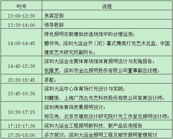 深圳“迎大運城市照明提升工作”是(shi)我(wo)國(guo)城(cheng)市(shi)照(zhao)明(ming)工(gong)程(cheng)的(de)又(you)一(yi)個(ge)經(jing)典(dian)之(zhi)作(zuo),為(wei)了(le)總(zong)結(jie)這(zhe)項(xiang)工(gong)作(zuo)的(de)成(cheng)功(gong)經(jing)驗(yan),為(wei)今(jin)後(hou)類(lei)似(si)活(huo)動(dong)提(ti)供(gong)城(cheng)市(shi)照(zhao)明(ming)提(ti)升(sheng)工(gong)作(zuo)的(de)參(can)考(kao),更(geng)為(wei)提(ti)升(sheng)我(wo)國(guo)城(cheng)市(shi)夜(ye)景(jing)照(zhao)明(ming)水(shui)平(ping)、推進城市照明節能環保提供思路,廣州光亞法蘭克福展覽有限公司、阿拉丁照明網等照明行業服務平台聯合有關單位在深圳舉行“燈光,讓城市更美好——深圳2011年世界大學生運動會照明成果彙報會”,邀yao請qing國guo內nei外wai照zhao明ming行xing業ye知zhi名ming機ji構gou和he人ren士shi參can加jia,分fen享xiang深shen圳zhen城cheng市shi照zhao明ming的de成cheng果guo,探tan討tao未wei來lai城cheng市shi照zhao明ming的de發fa展zhan方fang向xiang,進jin而er助zhu推tui照zhao明ming行xing業ye的de發fa展zhan,讓rang照zhao明ming行xing業ye為wei改gai善shan我wo們men的de城cheng市shi生sheng活huo發fa揮hui更geng大da作zuo用yong。