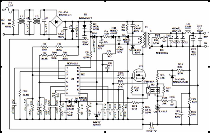 圖1 基於NCP1652A的單段轉換器的完整原理圖[page]