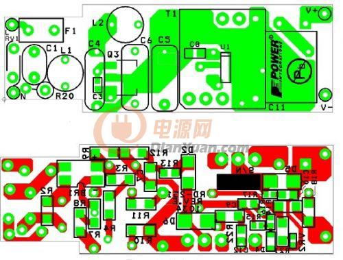 變壓器的次級由D5整流,由C11濾波。選用肖特基勢壘二極管來提高效率。由於C11在AC過零點期間提供能量存儲,因此它的值決定了線電壓頻率輸出紋波的幅值(因采用全波整流而為2 x fL )。因此可根據所需的輸出紋波來調整該值。對於所顯示的680 微F值,輸出紋波為正負IO的50%。電阻R17和C10用來衰減高頻振蕩,改善傳導及輻射EMI。