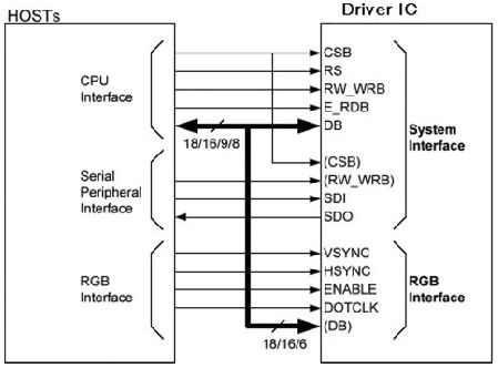圖2 顯示了一個典型的主控端的連接方式,CS、RS、WRB、RDB 是控製型號,分別是片選信號、數據或命令、寫/ 讀信號,按照一定的時序控製,數據得以傳輸,畫麵才能正常顯示。