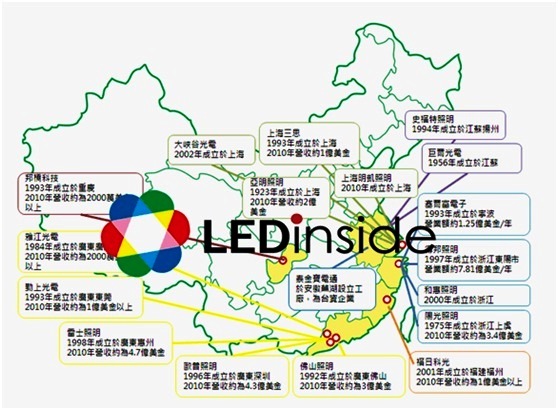 2011年中國照明廠商分布概況