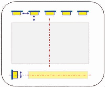 對背光的合理設計可以提高LED的利用效率。影響LED利用效率的結構參數主要有3個:LED之間的距離;LED發光麵到LGP入光麵之間的距離;LED發光麵和LGP入光麵兩者的垂直距離。如圖3所示。隻有將三者綜合考慮才能最大化LED的利用效率,從而降低功耗。