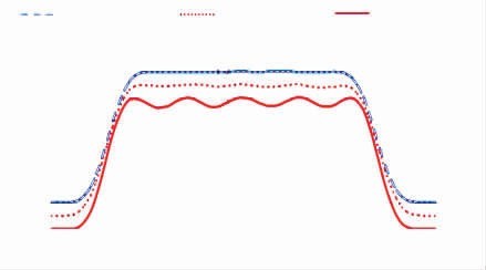 由於LED是端麵發光,圖4所示為LED端麵發光示意圖,整個LED Bar是不連續的光源,因此,當LED之間的距離過大時,亮度會下降,並且可能產生明暗相間的Hot Spot現象;當LED之間的距離過近時,雖然亮度得到較大的提高,但需要LED的數量也會增加,導致LED的低利用效率和背光的高功耗。圖5是試驗得到的LED亮度分布曲線,從圖中可以看到,隨著LED距離的增大,亮度下降;在LED之間的距離d>4.35 mm時,還會出現Hot Spot現象,曲線波動越大說明Hot Spot越明顯。同時LED Bar的總長度應該小於LGP(1067×604.),所以為了保證LED的亮度以及避免Hot Spot現象,取LED之間的距離d=3.35mm。