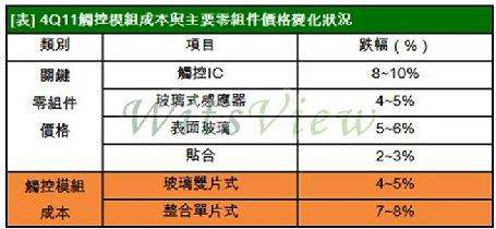- 2012年上半年觸控模組成本將移轉至單片式產品
