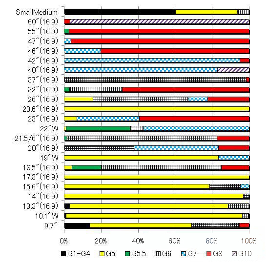 圖2:TFT液晶麵板分尺寸/分生產線代的生產份額(2011年)