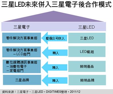 林芬卉說明,為提升三星LED事業競爭力,在三星電子(Samsung Electronics)組織改造之際,未來三星LED將納入三星電子的「零件解決方案事業部」,且LED上、中、下遊產業鏈與三星電子各事業部皆有合作關係,藉由共享資源方式以發揮綜效。