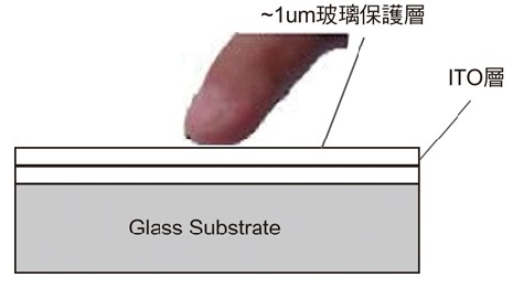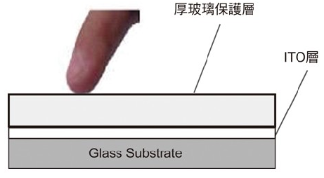 圖1(a)電容式觸控麵板感應電容範例:表麵接觸型觸控玻璃
