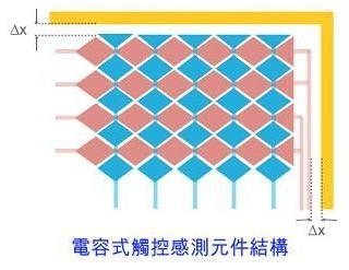 圖1(b)電容式觸控麵板感應電容範例:內在投射型觸控玻璃