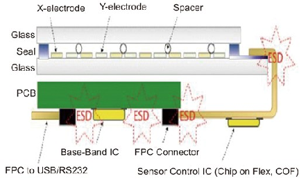 圖2 控製IC在軟板上的觸控模組之ESD潛在危險