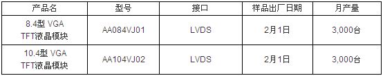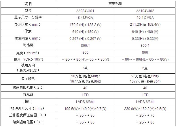 AA084VJ01/AA104VJ02:三菱發售高亮度、寬視角TFT液晶模塊