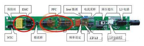 目前,幾乎市場上所有LED日光燈的電源都是采用內置式。所謂內置式就是指電源可以放在燈管裏麵。這種內置式的最大優點就是可以做成直接替換現有的熒光燈管guan,而er無wu需xu對dui原yuan有you電dian路lu作zuo任ren何he改gai動dong。所suo以yi內nei置zhi式shi電dian源yuan的de形xing狀zhuang通tong常chang都dou是shi做zuo成cheng長chang條tiao形xing,以yi便bian塞sai進jin半ban圓yuan形xing的de燈deng管guan中zhong去qu。內nei置zhi式shi電dian源yuan有you兩liang種zhong,一yi種zhong是shi非fei隔ge離li式shi(圖1),一種是隔離式(圖2)。