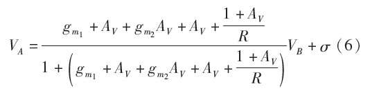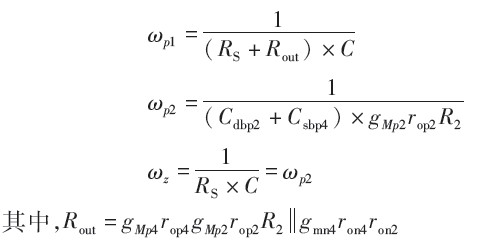 其中,ro4、ro3為 VB''''、VA''''處的等效輸出電阻。設 gm1ro3=gm2ro4=AV,且 Mp5為電流鏡,增益約為1,綜合式(3)到式(5):