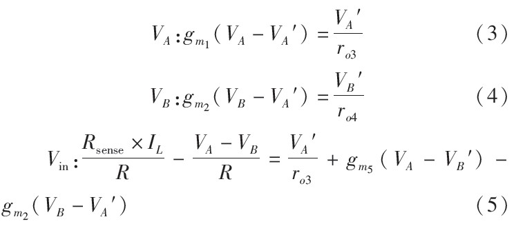 的微小值。由式(6)可以看出,當gm1ro2或gm2越大,VA與VB的匹配度越高,電流采樣越精確。值得注意的是,式中出現gm1ro3的平方項,這意味著可以用較小的增益達到高精度。但是,耐壓5 V的低壓管無法在高輸入電壓下正常工作,電路中必須使用大量耐壓40 V的高壓管。然而高壓管的增益與等效輸出電阻很低,無法滿足電流采樣電路的精度要求。
