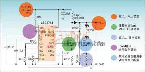 圖:基於LTC3783的大功率PWM LED驅動電路