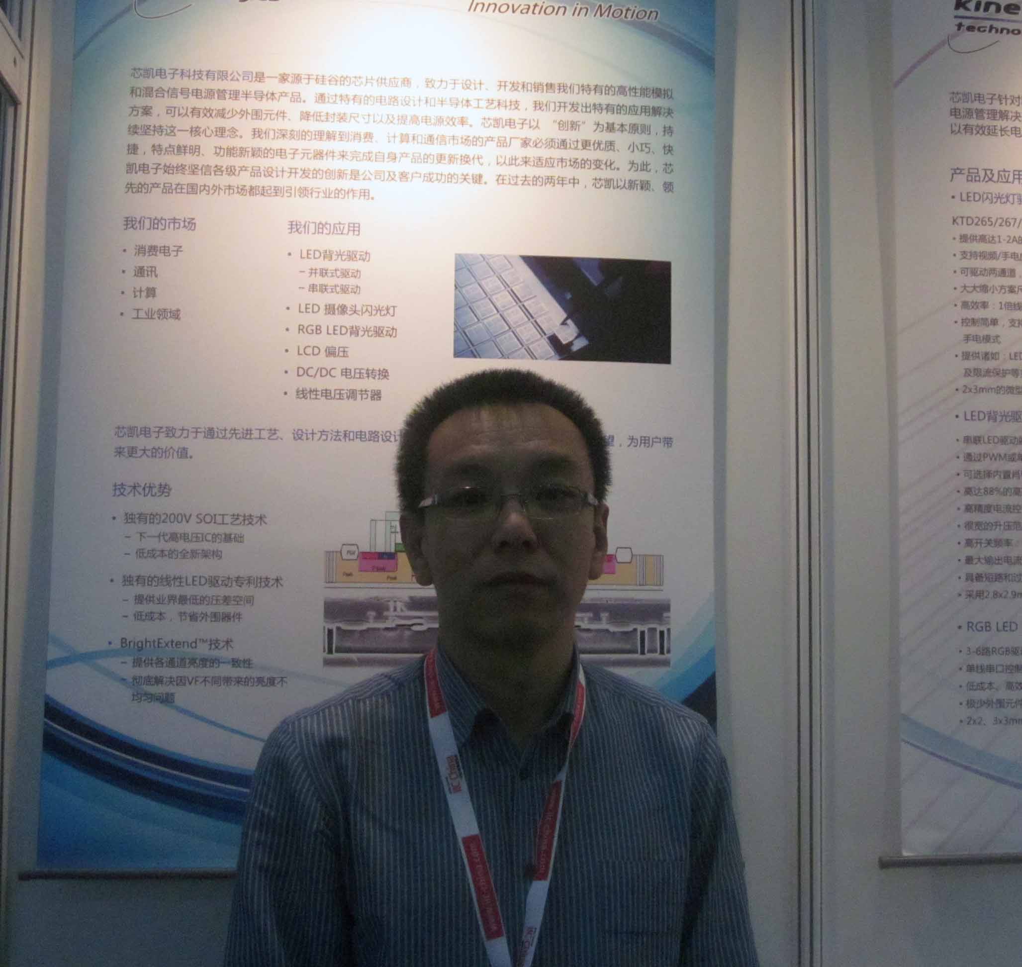 芯凱電子針對照明市場的各種需求,還推出了各款LED照明領域的驅動產品,包括有KTD353和KTD590驅動器。據劉宏介紹,他們公司在LED照明領域的產品,覆蓋了小、中、大功率的應用的驅動產品。劉宏認為影響LED燈具壽命的就是LEDqudongdianyuanshicaiyongwudianjiedianrongqudongfanganhaishidianjiedianrongqudongfangan。muqianshuo,wudianjiedianrongqudongqizaishejiguocheng,jishuxuqiubijiaogao,guochengbijiaofuza,tamengongchengshiyeyouzaizhegelingyushangnuli。weishiyinggezhongkehudexuqiu,bulunshidianjiedianrongqudongqihaishiwudianjiedianrongqudongqitamendouyougongying。liuhongrenwei,chanpinshiyizhongjishudechengxianxingshi。tamendegongchengshiyaozuodejiushizhangwohaohexindejishu,zheyangtamenzuochuchanpinxingnengjiuhao,kekaoxingyeqiang,bupadajiagezhan。tamenyaozuodechanpindoushiyaomanzuyukehudeshijixuqiuyijishichangdefazhanxuyaode。