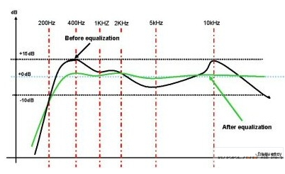 圖示均衡可以用來彌補由於小型揚聲器、機箱諧振等引起的音頻問題,但它不是最好的方法,因為頻段的寬度和頻率是固定的。