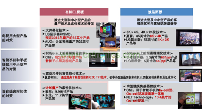 2012年,SMD和LG顯示器計劃量產電視用55英寸麵板,友達光電(AUO)和奇美電子(CMI)計劃量產智能手機用中小型麵板。日本廠商中,日本顯示器正在以2013年量產為目標。索尼和鬆下也將共同開發大尺寸麵板。隨著各競爭公司紛紛表明涉足,“如果美國蘋果等大客戶有需求,夏普應該也不會拒絕”(顯示器相關分析師)。