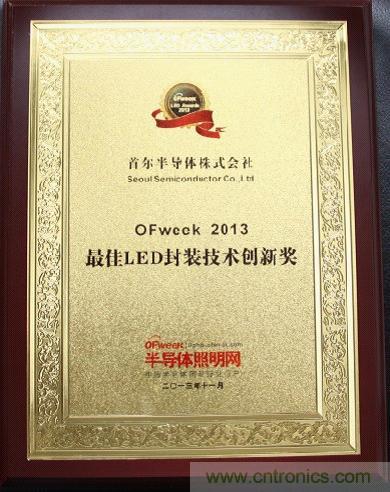 首爾半導體榮獲OFweek•2013最佳LED封裝技術創新獎