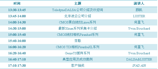 秉(bing)承(cheng)客(ke)戶(hu)至(zhi)上(shang),以(yi)市(shi)場(chang)需(xu)求(qiu)為(wei)導(dao)向(xiang),感(gan)謝(xie)一(yi)路(lu)上(shang)有(you)新(xin)老(lao)客(ke)戶(hu)的(de)陪(pei)伴(ban)支(zhi)持(chi)與(yu)理(li)解(jie),才(cai)使(shi)得(de)淩(ling)雲(yun)公(gong)司(si)在(zai)前(qian)進(jin)的(de)道(dao)路(lu)上(shang)有(you)足(zu)夠(gou)的(de)動(dong)力(li)與(yu)方(fang)向(xiang),看(kan)到(dao)了(le)美(mei)好(hao)的(de)視(shi)覺(jiao)給(gei)人(ren)們(men)帶(dai)來(lai)的(de)豐(feng)富(fu)多(duo)彩(cai)的(de)生(sheng)活(huo)。此(ci)次(ci)答(da)謝(xie)會(hui)得(de)到(dao)了(le)Teledyne DALSA的高度重視與支持,屆時,DALSA亞太區OEM技術總監Yvon Bouchard、 DALSA線掃描產品資深產品經理何星飛等大咖將會帶來國際前沿的技術與產品資訊: