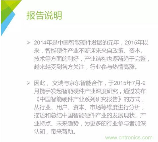 【導讀】日前,京東智能聯手艾瑞谘詢對智能硬件市場展開深度研究,並發布智能硬件產業係列研究報告,結合京東的大數據,從行業、用戶、資本、市場等維度,對智能硬件市場進行全麵分析,並描述與總結目前中國智能硬件產業的發展現狀、產業特點、未來趨勢,為更多的行業參與者加深認知,帶來幫助。