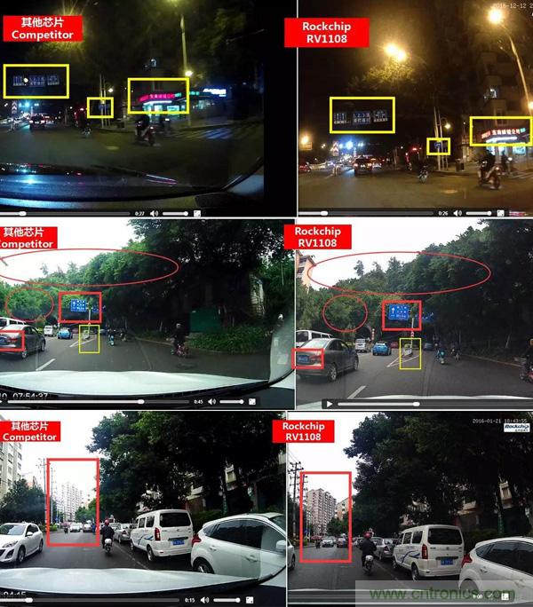 CES2017,瑞芯微Rockchip公布了三段基於RV1108視覺處理芯片平台與同類解決方案的對比視頻。在夜視、逆光、清晰度多情境下,凸顯出RV1108圖像處理在“寬動態”上的畫質優勢。