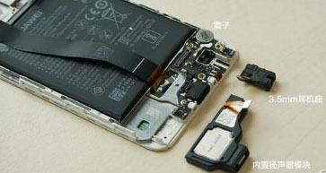P10的下半部分,我們發現揚聲器模塊、3.5mm耳機座均采用FPC與副板連接,而市麵上不少機型在這部分均采用了金屬觸點這種活連接方式。在性能上兩者的差異不會太大,但FPC這種方式成本會更加高。