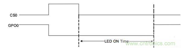 通常對於電容式按鍵來說,LED直接位於按鍵之下,從中心位置發光。用戶手指放在按鍵上,LED就會被隱藏起來。在此情況下,如果用戶手剛從按鍵上拿開LED燈就馬上關閉,那麼用戶可能難以確定按鍵操作到底成功沒有。為此,我們可以讓LED在觸摸結束後保持“開啟”一小段時間,從而為用戶提供更好的視覺反饋。這種特性就叫LED開啟時間,如圖2所示。
