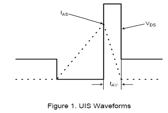 一般評估場效應晶體管的崩潰效應皆以單一脈衝 UIS 為基準。如圖一所示。此方式簡單的定義了幾個針對被測試組件的基本參數。例如在崩潰時間內所流經場效應晶體管的最大峰值電流 (IAS), 在 UIS 開始前的起始接合麵溫度 (Tj), 以及崩潰時所經過的時間 tAV 。 將 IAS 及 tAV 所對應出來的圖表曲線可提供使用者了解此組件針對 UIS 的表現能力 , 而提供一個客觀且公正的衡量依據。
