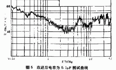從測試圖4和圖5中能很清楚地看出測試結果。不合格的為選用0.OμF的電容濾波,改進後選用0.1μF的電容濾波測試結果台格。濾波器的安裝質量同樣對衰減特性影響很大,隻有把濾波器正確地安裝到UPS不間斷電源上,才能獲得預期的衰減特性.