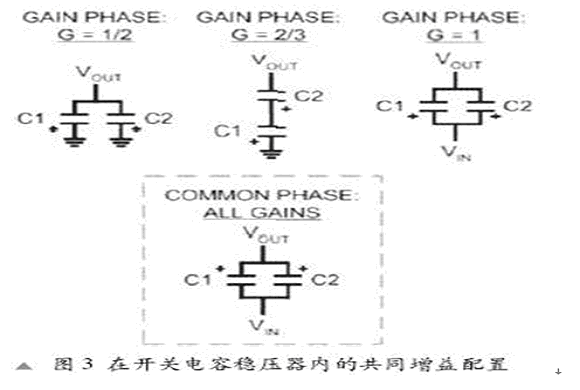 由於具有電壓增益的關係,一個開關電容穩壓器是比線性穩壓器更有效的解決方案,這個電壓增益是通過在雙相位(充電相位和傳輸相位)中的堆疊電容器和並行電容器所取得的輸入電壓與輸出電壓比率。例如:位於增益配置中的一個開關電容轉換器的1/2將把一個3.6V的輸入電壓(VIN)轉變為1.8V的輸出電壓(VOUT)。如果要求的電壓(VOUT)是1.5V,那麼功耗僅為300mV與負載電流的乘積。這相當於83%的效率。