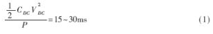 式中,P為逆變器輸出功率,VDC為直流側電壓,CDC為直流側電容容量。經計算得到需要的電容容量為0.0175F≤CDC≤0.035F。實際係統中的電容容量為20000μF。