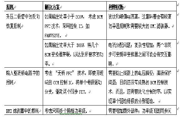 采用有源FPC技術的電源市場明顯比通用的AC-DC市場成長更快;市場對效率更高的變換器的需求已經增加。然而,提高效率並不是沒有代價的,必須在成本、部件數、可靠性和新技術之間權衡考慮 (見表1)。仔細選擇部件,並結合新的控製技術和更優化的工程手段,就可顯著提高PFC變換器的效率。