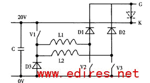 開通脈衝通過圖2的開通電路產生。先閉合V1,V2,V3,在L1,L2中建立起脈衝電流,當電流達到一定幅值後,先斷開V2,然後再斷開V3,電感中的電流換流至門極端子,脈衝電流波形如圖3所示。