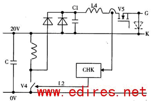 IGCT開通之後陽極電流不會馬上流通。在電流源逆變器中二極管的關斷有時會延遲電流換向進入工作中的IGCT。開通脈衝的第二部分設計符合換向的要求。開通脈衝產生之前先斷開圖4中的開關V6。