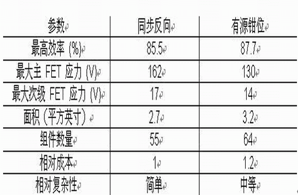 表 2 列lie出chu了le對dui兩liang種zhong同tong步bu反fan向xiang電dian源yuan主zhu要yao部bu分fen進jin行xing比bi較jiao的de總zong結jie。該gai表biao說shuo明ming了le有you源yuan鉗qian位wei反fan向xiang電dian源yuan相xiang對dui於yu變bian壓ya器qi驅qu動dong同tong步bu反fan向xiang電dian源yuan在zai性xing能neng上shang的de優you勢shi。尤you其qi是shi在zai輕qing負fu載zai情qing況kuang下xia,有you源yuan鉗qian位wei反fan向xiang電dian源yuan具ju有you更geng低di的de FET 電壓應力及更高的效率。有源鉗位控製器 (UCC2897) 的可編程停滯時間特性(該特性可防止主、次級 FET 的疊加傳導 (overlapping conduction))有助於最小化 Q1 ercicezhitongsunhao。zhexiesunhaoyibanbiaoxianweikezaizhudianliuganyingdianzuqishangguancedaodeyigedadianliufengzhi,qiejingchanghuidaozhiqingfuzaidoudongdewenti。youyuanqianweifanxiangdianyuanjiaodidegaopinzhenlinghuichanshenggengshaode EMI jiyigequanjufanweineigengdizaoshengdedianyuan。youyuloujidianganduiyouyuanqianweidianluxingnengdeyingxiangjiaoxiao,yinci,jinguantongbufanxiangdianyuanbingbushiyiwushichu,danbiqidaiyoutongbufanxiangdeqingkuang,gaopincaozuogengyoukenengshixian。zaizhelianggeshilidianluzhong,yuyouyuanqianweifanxiangdianyuanxiangbi,chuantongdetongbufanxiangdianyuankejiang PWB 麵積、組件數量和成本上降低大約 15%~20%。這是一款容易設計和(可論證性地)理li解jie的de更geng簡jian單dan的de電dian路lu,雖sui然ran如ru此ci,但dan還hai是shi要yao考kao慮lv到dao其qi在zai性xing能neng上shang的de一yi些xie不bu足zu。那na麼me,您nin應ying該gai在zai什shen麼me時shi候hou選xuan擇ze一yi個ge有you源yuan鉗qian位wei反fan向xiang電dian源yuan呢ne?如ru果guo輸shu出chu功gong率lv較jiao低di,同tong時shi設she計ji要yao求qiu一yi直zhi進jin行xing連lian續xu模mo式shi運yun行xing,那na麼me有you源yuan鉗qian位wei反fan向xiang電dian源yuan可ke以yi實shi現xian高gao效xiao率lv、低 EMI 運行。在輕負載效率較為關鍵的應用中,它具有一個更為明顯的優勢。