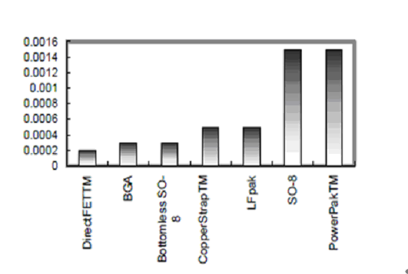 圖3顯示在目前使用的SMT器件中DirectFET封裝提供了最優良的封裝阻抗(DFPR)。