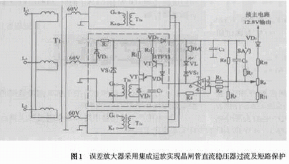盡管功率場效應VDMOS 和絕緣柵雙極型晶體管IGBT等電力半導體元器件層出不窮,且在電力電子技術領域占據重要位置,晶閘管(可控矽) 卻因耐高壓耐大電流衝擊的特性,仍有著穩固的陣地,受到用戶的青睞。在擯棄電流采樣、放大和執行等多個環節的情況下,將單結晶體管移相觸發器中的晶體管誤差放大器改為集成運算放大器,就可實現晶閘管直流穩壓器的過流及短路保護,簡化了電路結構,並提高了整機的穩定可靠性能和AC - DC變換效率。