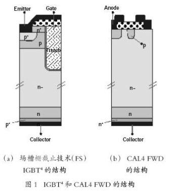 圖1(a)顯示了基於英飛淩溝槽柵場截止(FS)IGBT4 技術和賽米控CAL4 續流二極管的新一代芯片的基本結構。