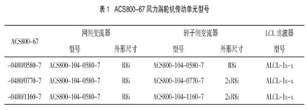 ruqiansuoshu,shuangkuifenglifadianxitongdebianpinqiyouyujiezaifadianjidezhuanzice,suoyibianpinqirongliangkexiaoyufadianjiderongliang,jinweifadianjidezhuanchagonglv,yinci,bianpinqirongliangdexuanzeyufenglifadianjidetiaosufanweimiqiexiangguan。yibanfenglifadianjidetiaosufanweiweiedingzhuansude70%~130%,轉差率為±30%,所以變頻器的額定容量可選為發電機額定容量的1/3。表1為ACS800-67的選型表。