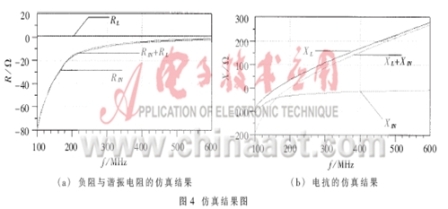 從圖4(a)的仿真結果可以看出,在200MHz附近,RIN+RL<0,所以滿足起振條件,由於RIN的負阻比較大,所以提供交流能量的能力比較強,故振蕩的幅度會比較大,這一點在後麵的仿真和測試中可以得到證實。從圖4(b)可以看出,當f為200MHz左右時,XIN+XL=0,從而滿足相位平衡條件,它決定了振蕩的頻率。