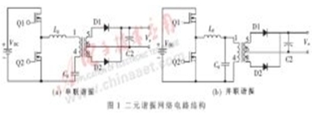 用兩個元件組成的諧振拓樸結構主要有兩種:並聯結構和串聯結構,分別如圖1(a)和圖1(b)所示。串聯諧振在輕負載時具有較高的效率,而在滿負載時轉換效率比較低;binglianxiezhenzefanzhi,zaimanfuzaishijuyoujiaogaodezhuanhuanxiaolv,erzaiqingfuzaishizhuanhuanxiaolvbijiaodi。erqiechuanlianxiezhenhebinglianxiezhendouyaoqiujiaokuandepinlvfanwei。yinci,zhezhongeryuandexiezhenwangluozaishijiyingyongzhongdouyouyidingdexianzhi。