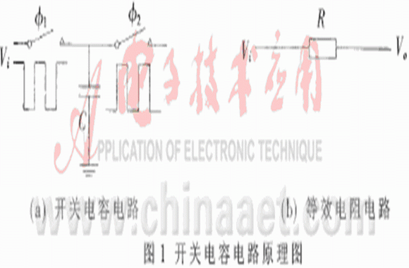 開關電容電路的基本原理是在電路兩節點之間接有帶高速開關的電容器,效果相當於一個電阻。其結構圖和等效電阻電路如圖1所示。開關控製信號φ1和φ2為兩相非重疊的時鍾(圖1(a)給出了頻率為fCLK的兩相非重疊時鍾信號波形)。