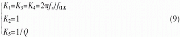 由推導分析可以得出以下結論: (1)因Ki為兩個電容的比值,故一旦硬件電路確定後,Ki也就完全確定了;(2)fn與fCLK成正比關係。(3)K2≡1;(4)K5決定著濾波電路的品質因數Q。