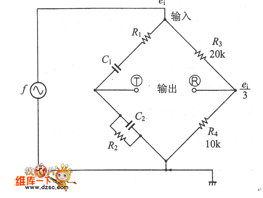 這種電路的平衡條件是端子①和⑩之間流過的電流為0。在很多的例子中,由於R1=R2、C1=C2,從
