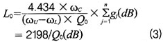 將前麵的濾波器歸一化低通元件值代入公式(6)和(7):