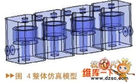 通過與前麵計算的耦合係數理論值的比較,可以選擇合適的耦合孔及耦合螺釘的初始值建立整體仿真模型(圖4)。一般這種初始值進行整體仿真的結果與期望的濾波器指標有一定的偏差,通過調節耦合螺釘的深度、激勵的位置以及頻率調諧螺釘的深度可使濾波器達到期望的指標。